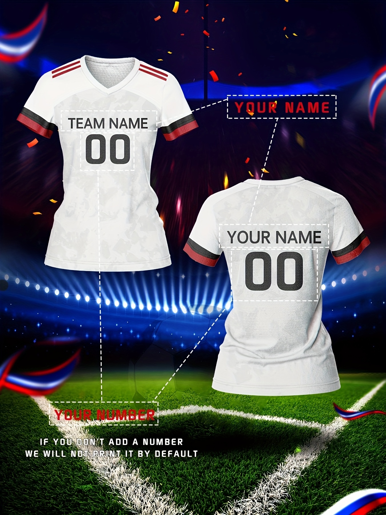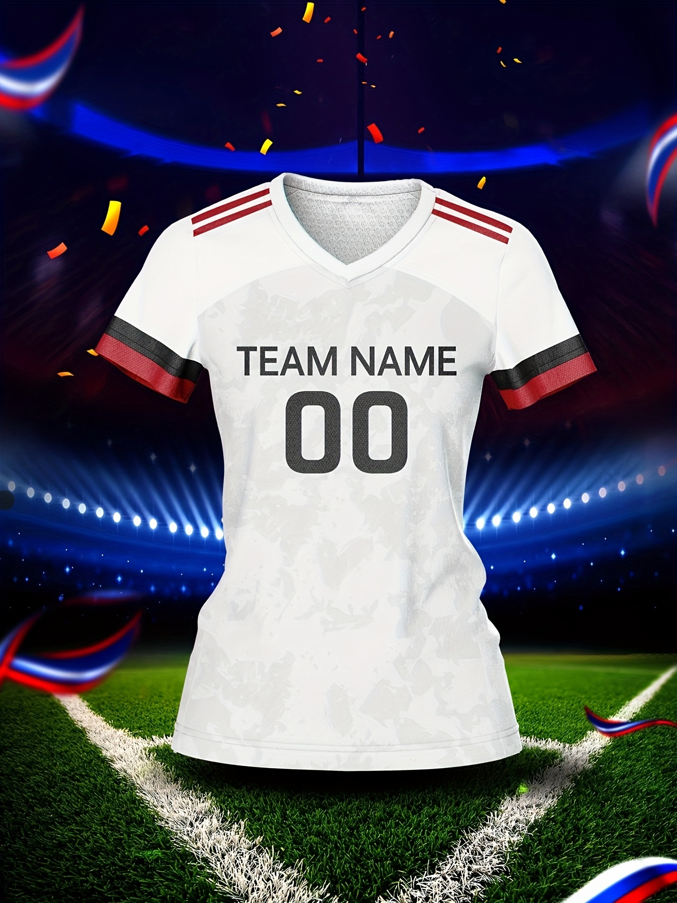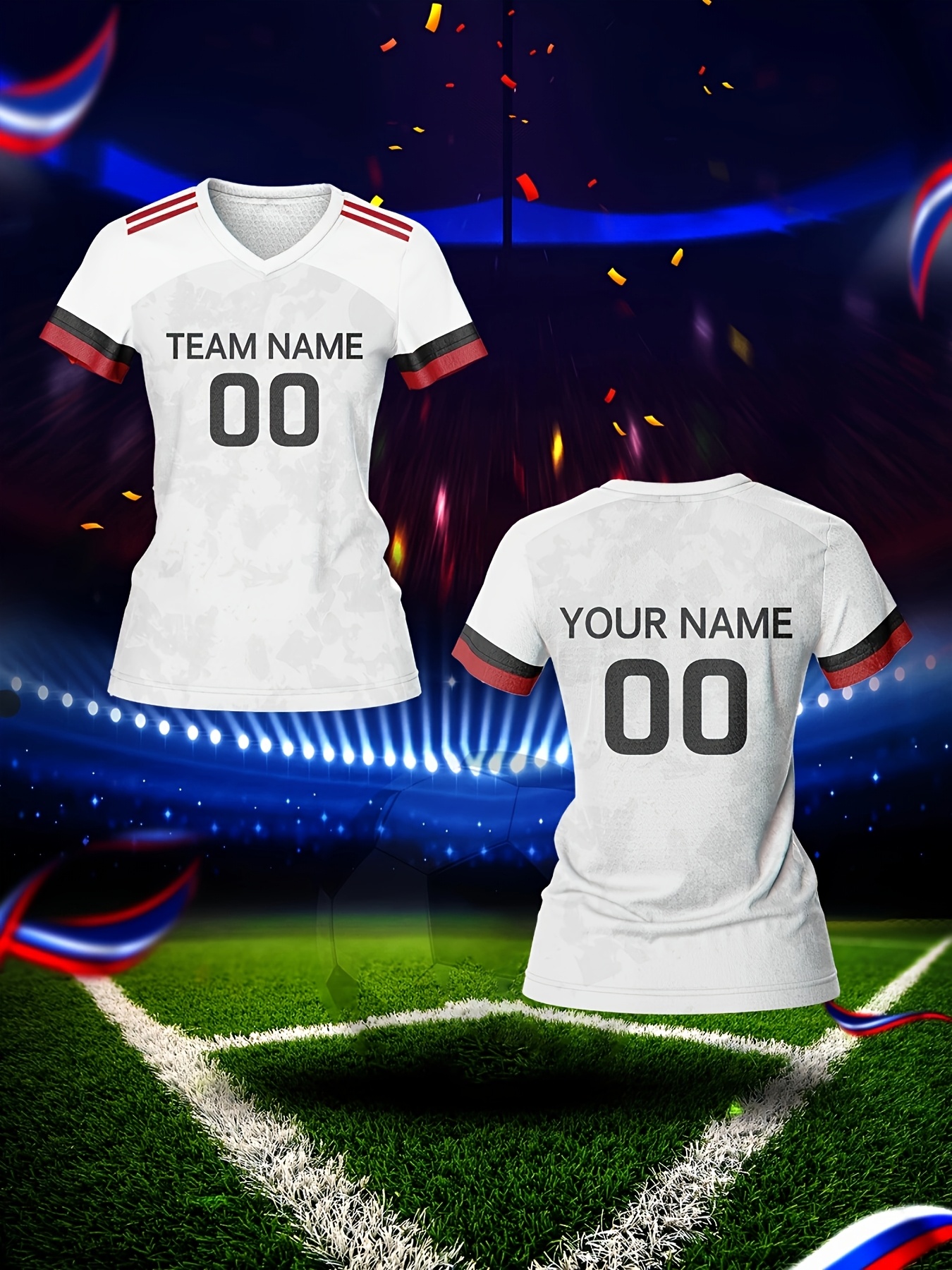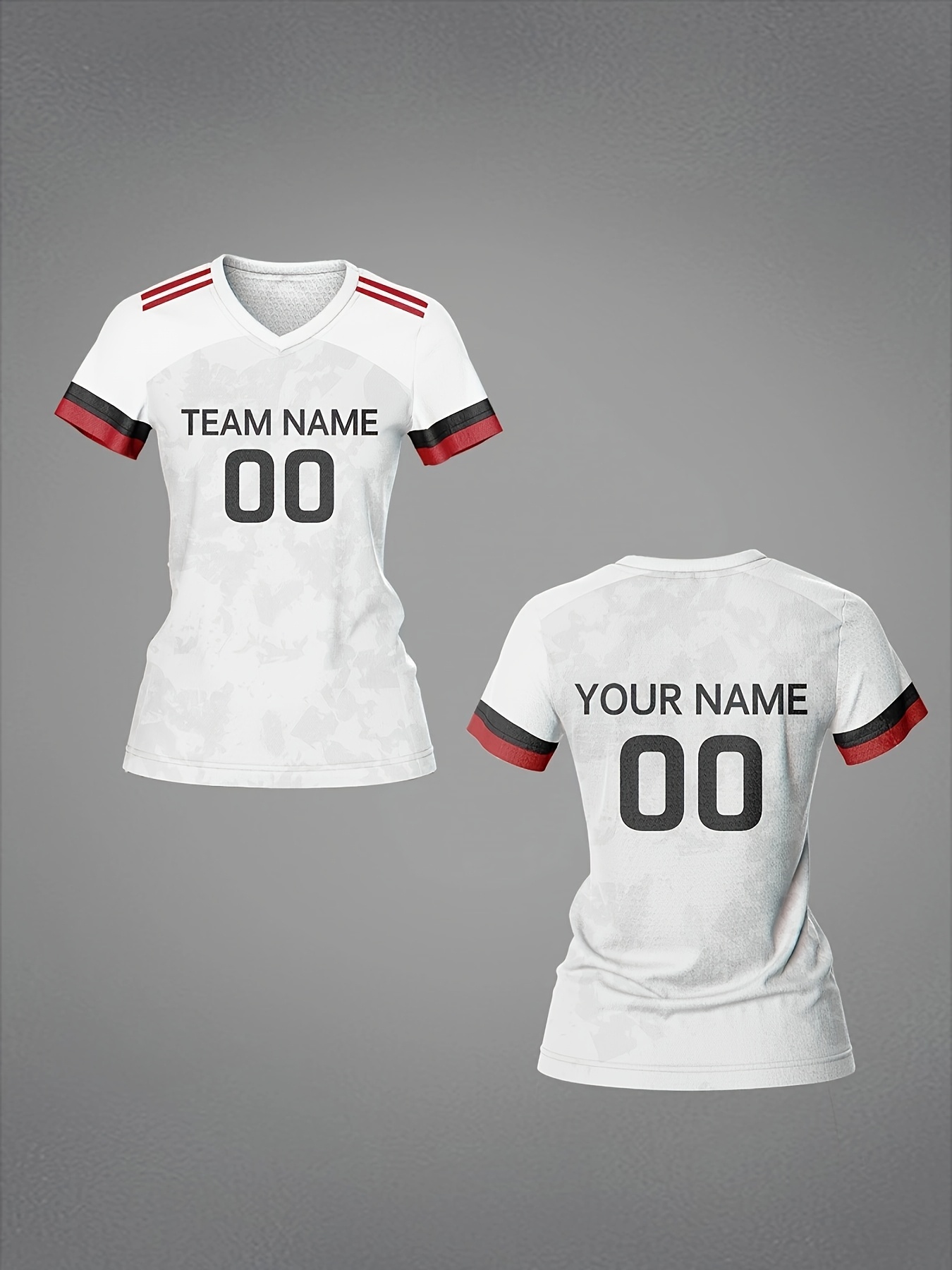 Customizable Women's V-Neck Soccer Jersey - Personalized Name & Number, Breathable Polyester, Quick-Dry Athletic Top for Team Training, Sports Fitness & Casual Wear, Casual Sportswear | Customizable Sports Gear | Smooth Fabric
