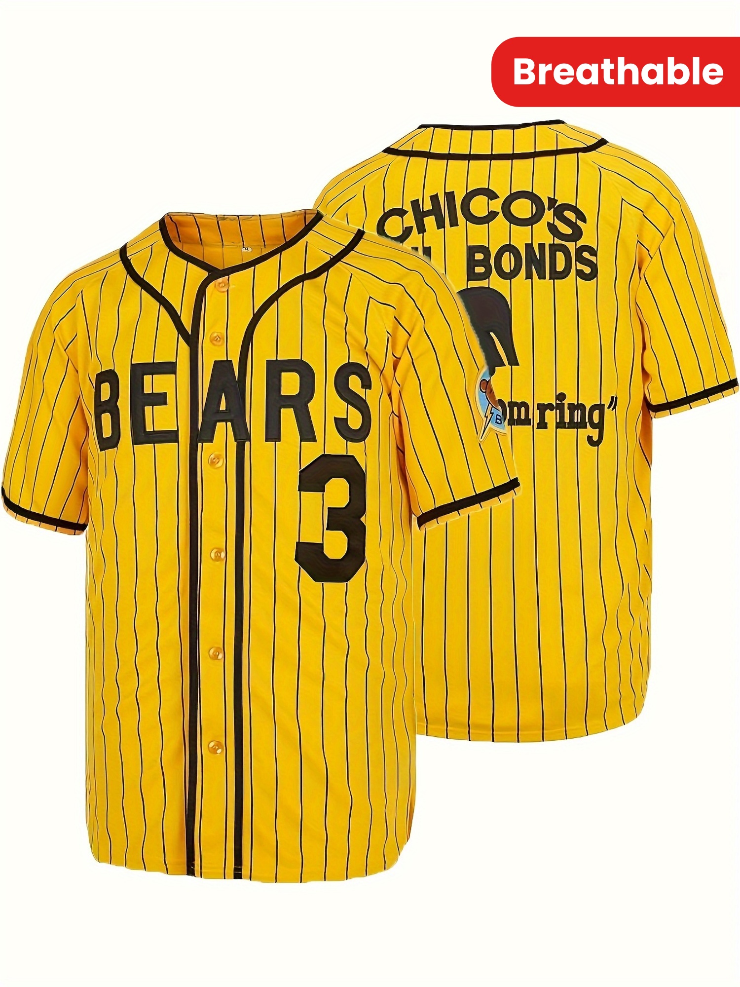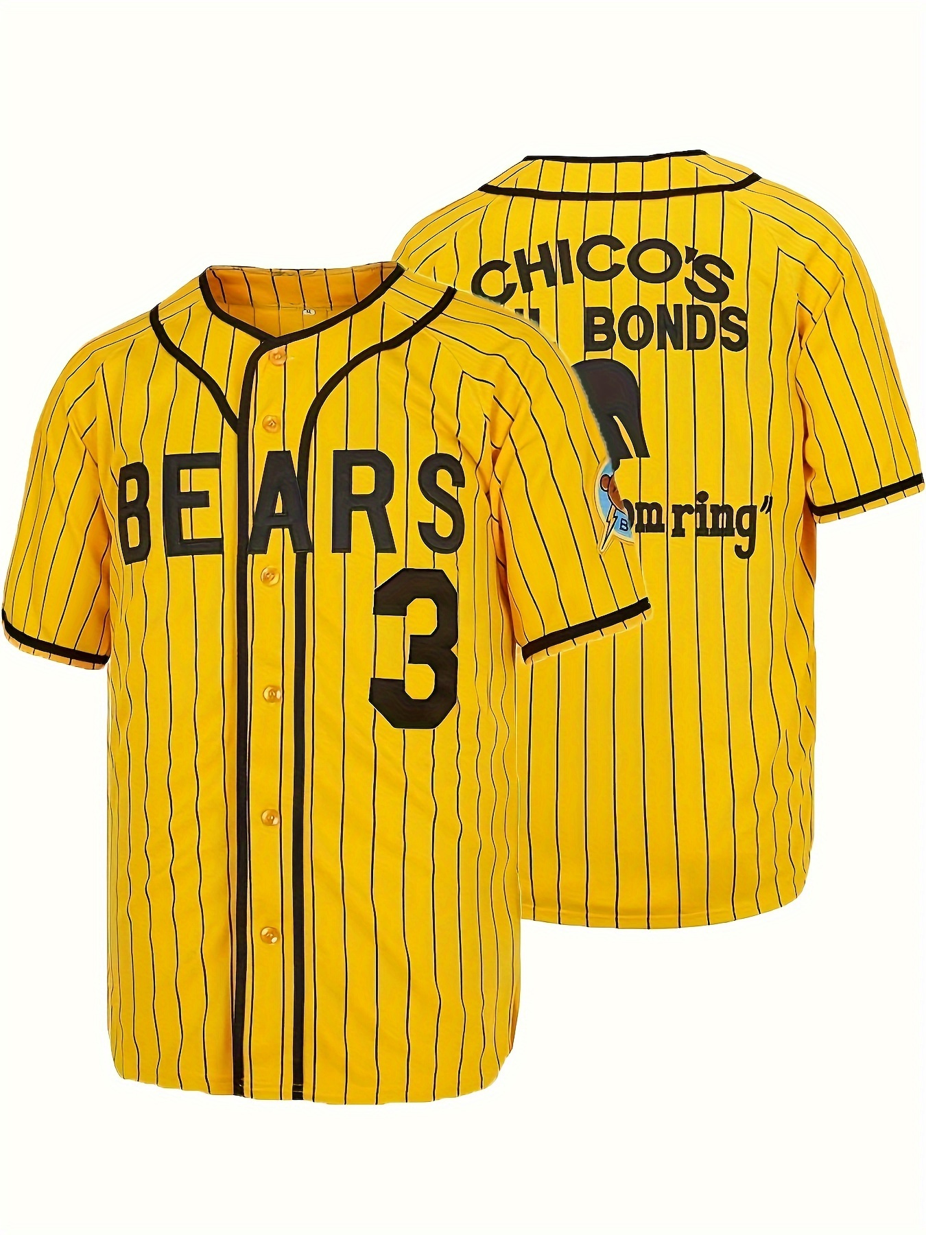 Men's #3 Yellow Stripes Baseball Jersey, Classic Retro Letter Embroidery Design Breathable Short Sleeve T-Shirt