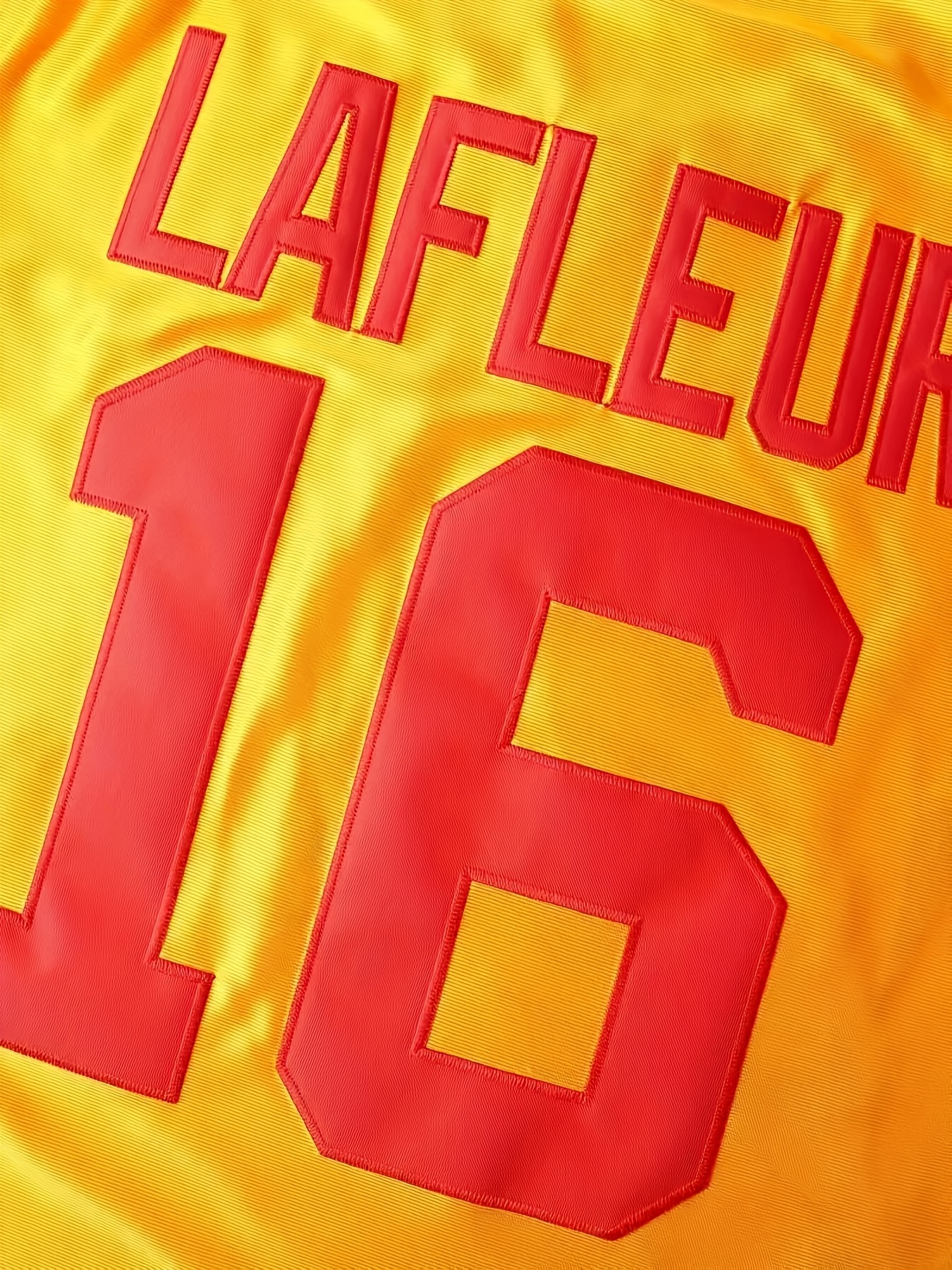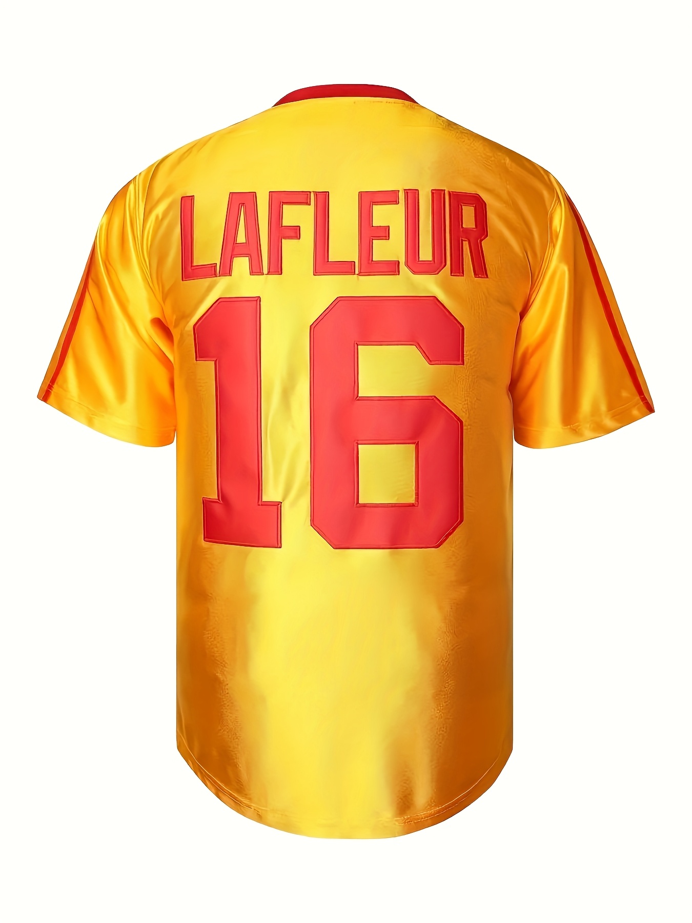 1pc LAFLEUR 16 Retro Vibrant Yellow Sports Jersey - Embroidered Lettering, Breathable & Moisture-Wicking Polyester, V-Neck, Short Sleeve, Loose Fit for Casual, Streetwear, Team Sports, Party - Unisex Adult & Youth Football Top