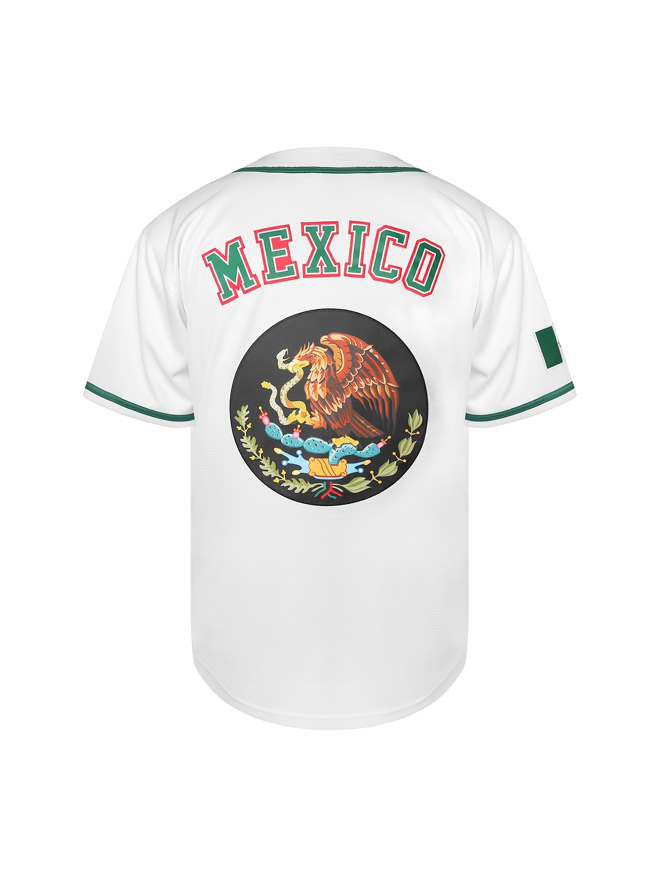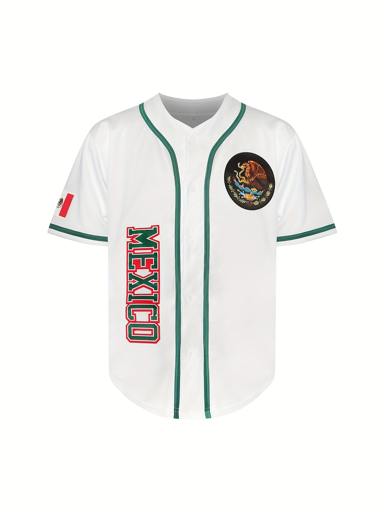 1pc Mexico Men'S V-Neck Baseball Jersey - Breathable Polyester Sports Top with Lettering and Emblem, Casual Loose-Fit for Training and Beachwear, Available in Black, White, and Red