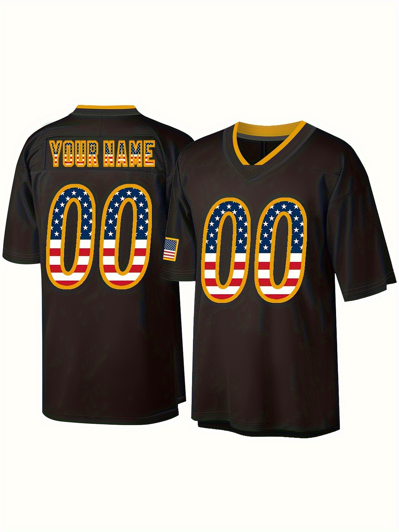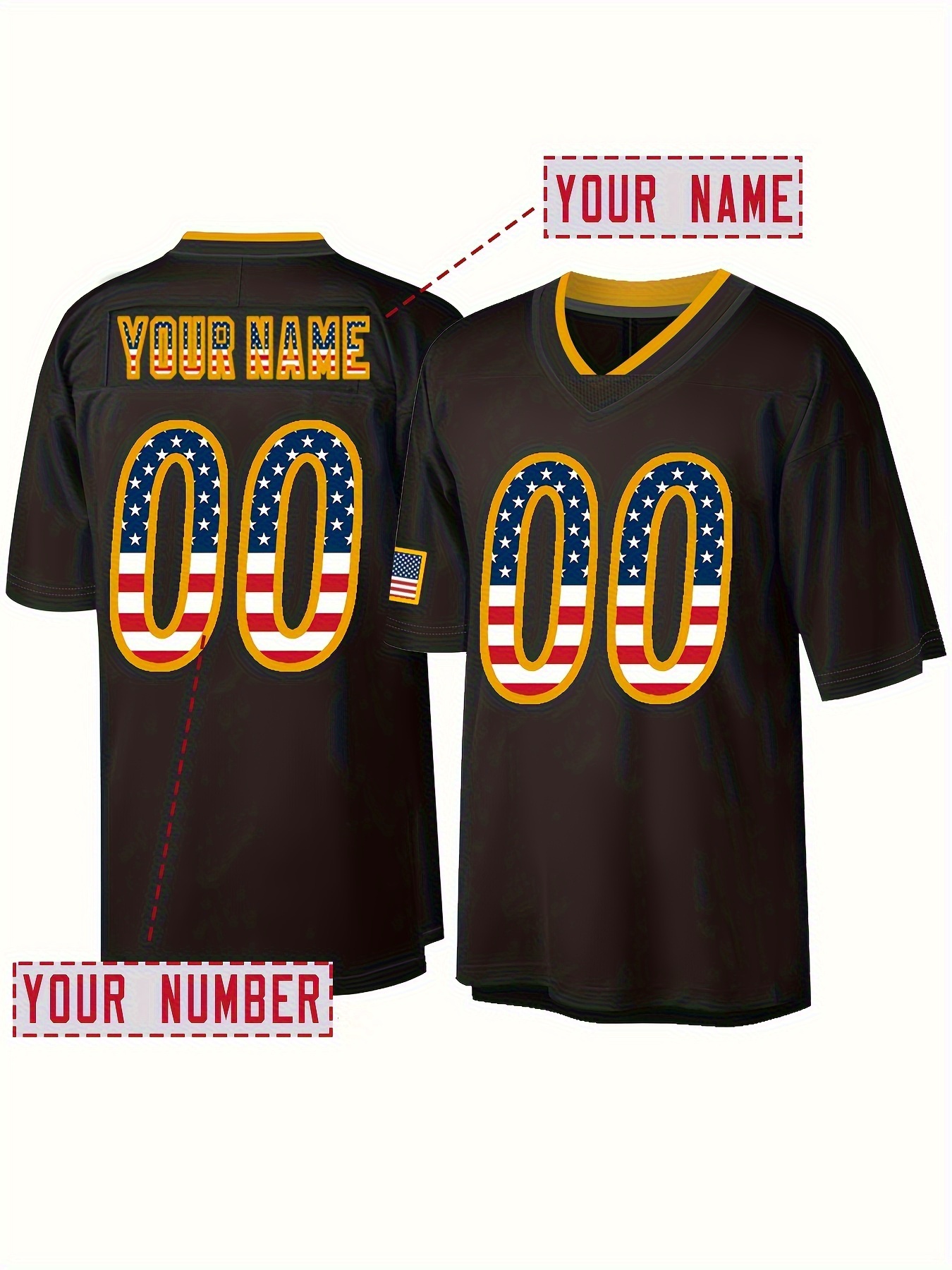 Customizable Women'S Football Jersey - Personalized Name & Number, American Flag Design, V-Neck Short Sleeve, Breathable Summer Sports Shirt for Team & Casual Wear, Football Jersey, PLUS SIZE