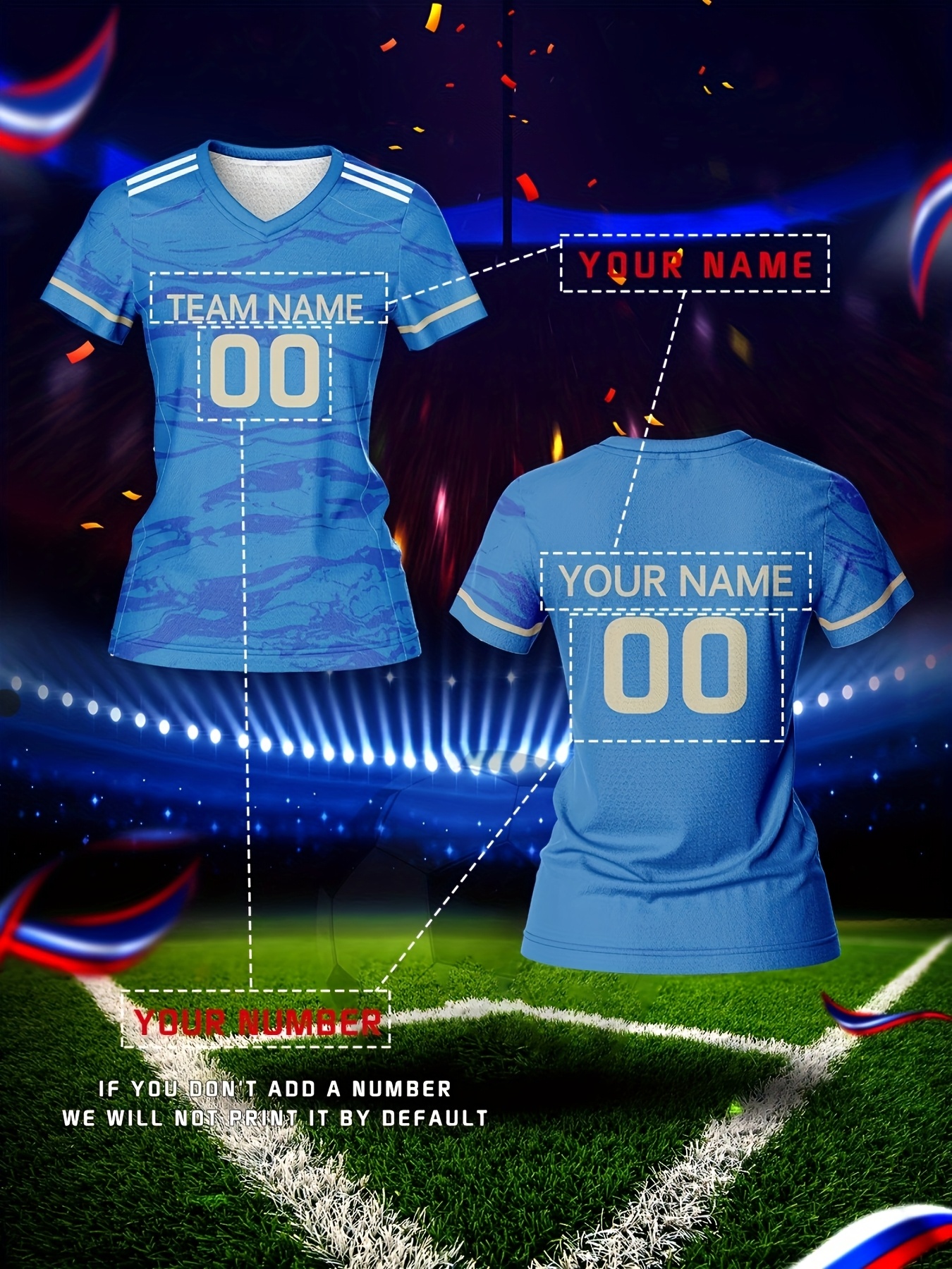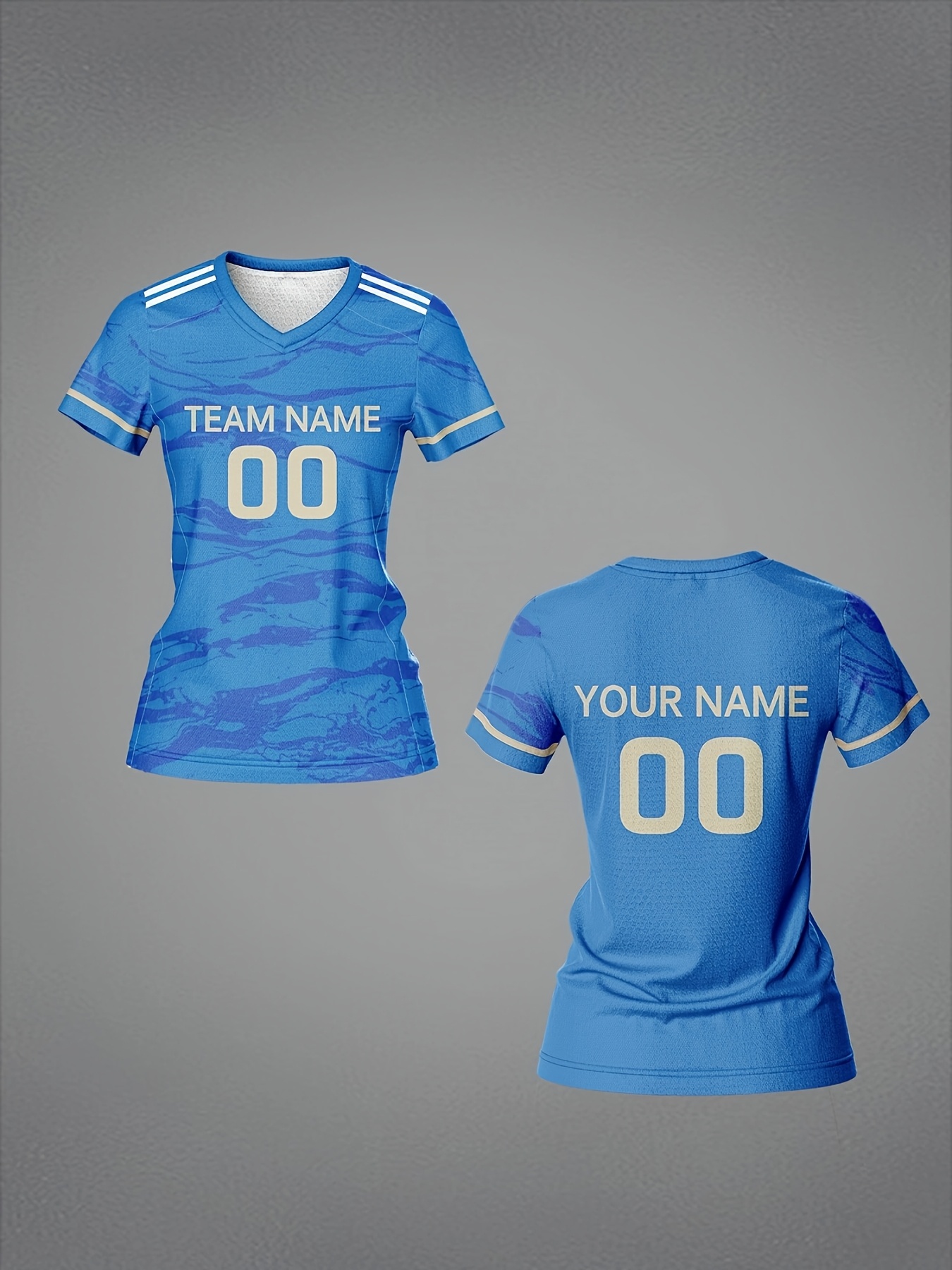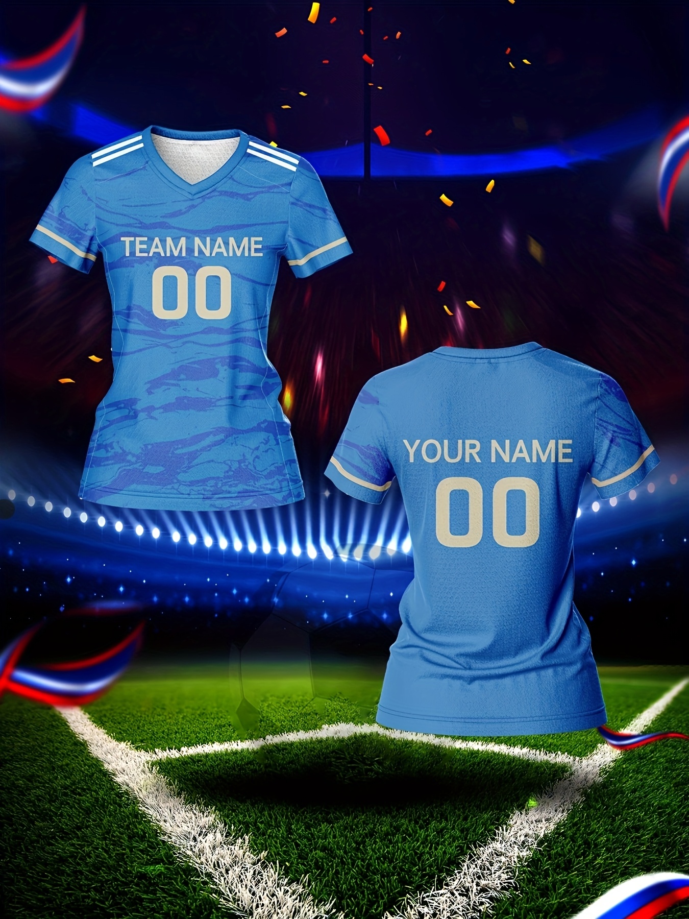 Customizable Women'S V-Neck Football Jersey, Polyester 100%, Quick-Dry Knit Fabric, Regular Length, All Over Print, Slight Stretch, Breathable for Training & Fitness, Spring/Summer/Fall Sports Top