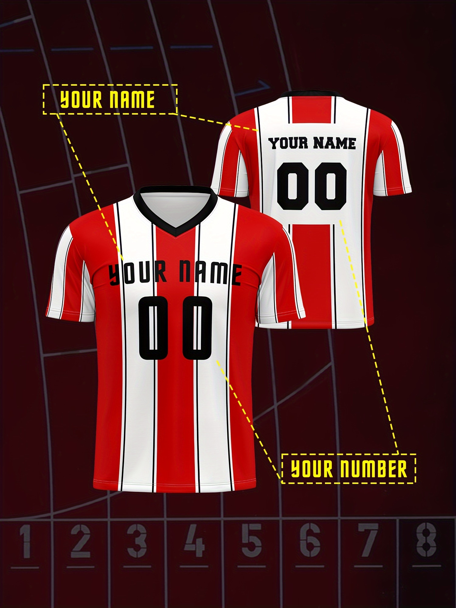Custom Youngsters' Soccer Jersey - Quick-Dry, Breathable Polyester V-Neck T-Shirt with Personalized Name & Number Design for Boys & Girls - Perfect for Sports & Outdoor Activities, Running, Training, Beach Outings - Spring/Summer/Fall, Perfect for Outdoor