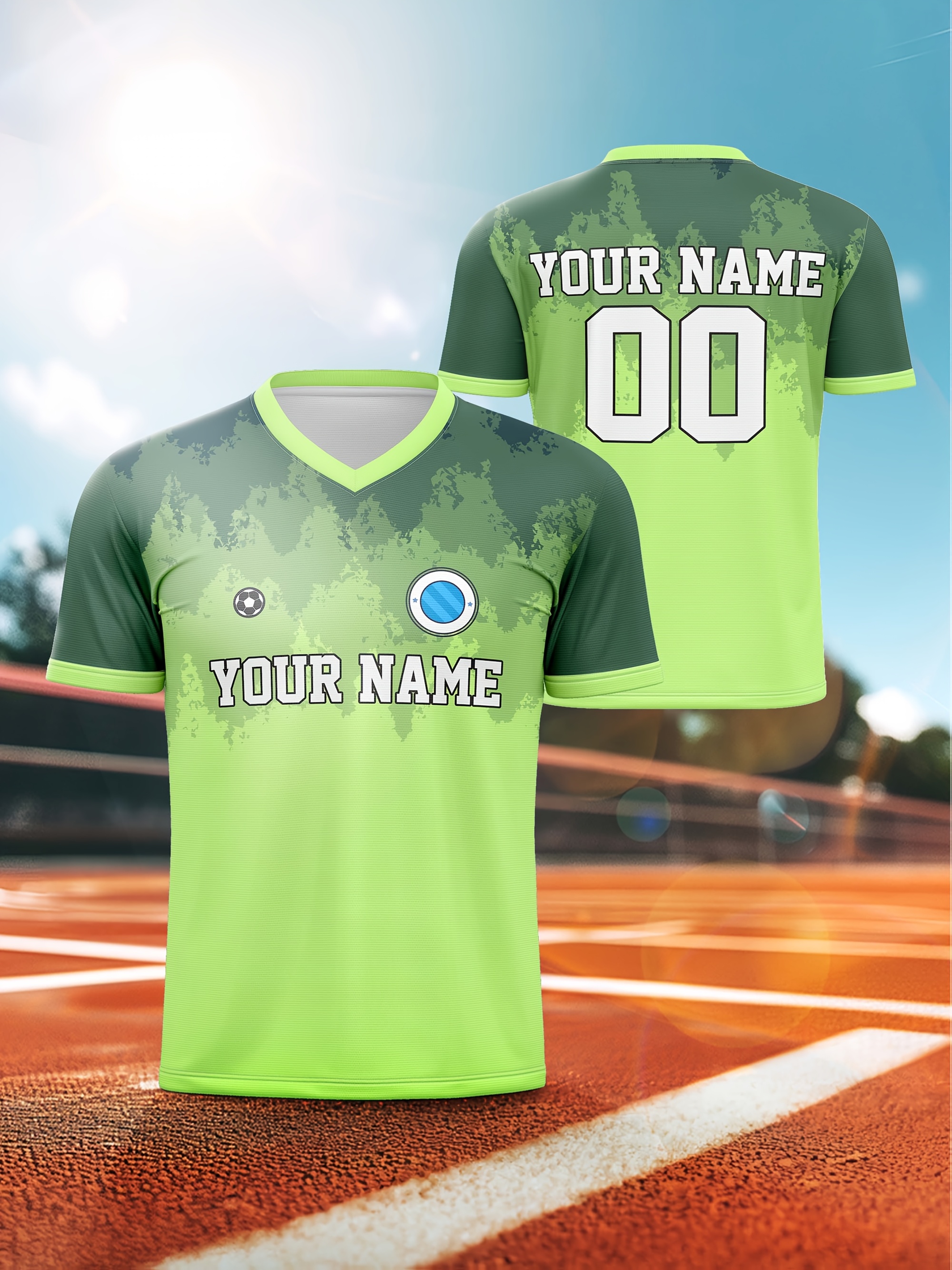 Customizable Youngsters' Soccer Jersey - V-Neck, Personalized Name & Number, Bright Green with Blue Accents, Comfortable for Sports, Outdoor Play & Training, Youth Sports Apparel | Vibrant Youth Top | Comfortable Polyester