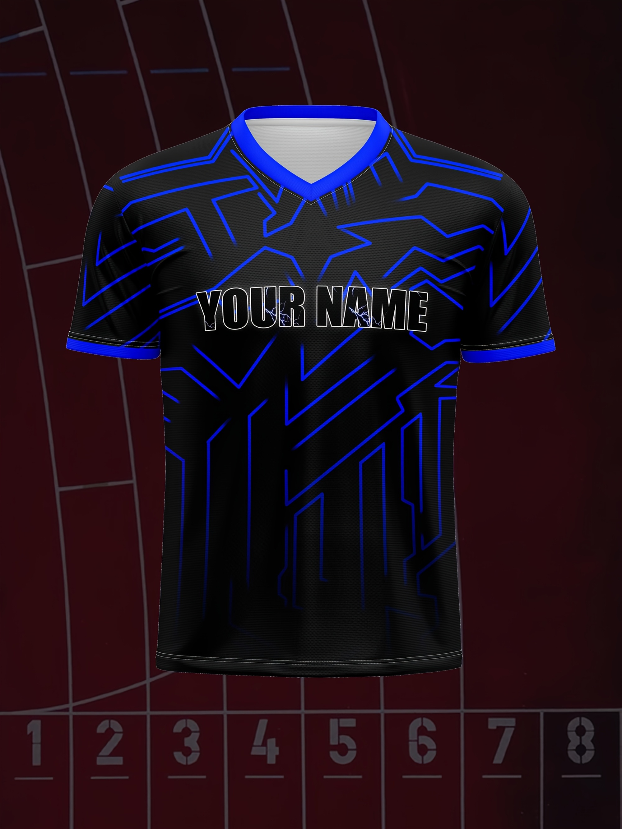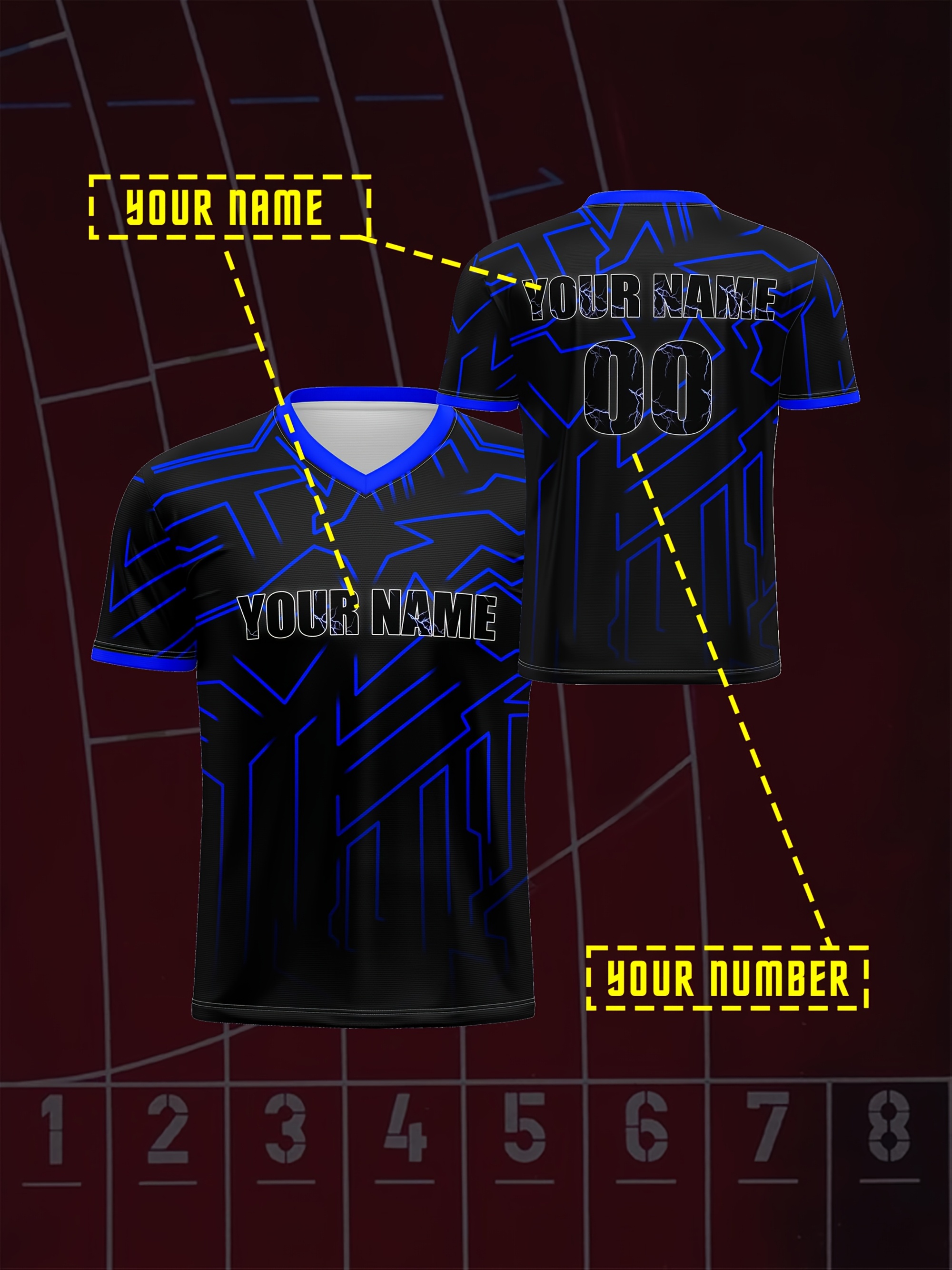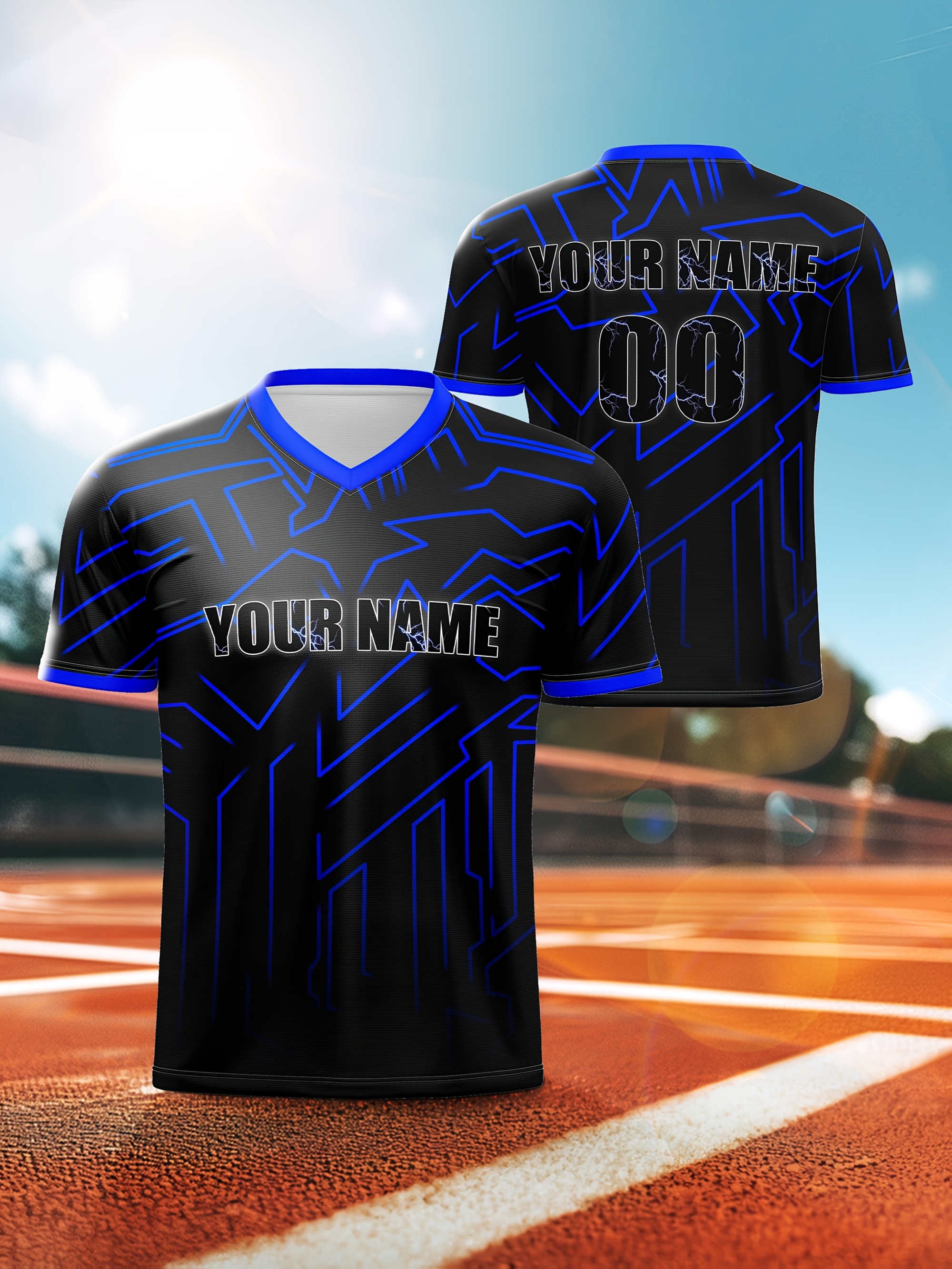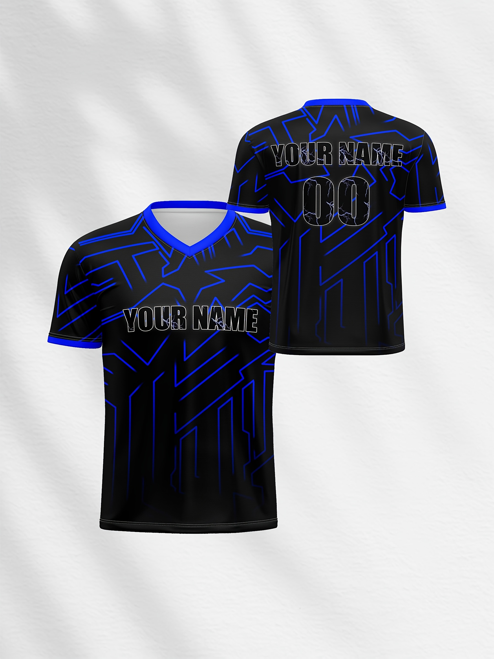 Customizable Youngsters' Soccer Jersey - V-Neck, Personalized Name & Number, Comfortable Polyester Sports Top in Black with Blue Accents for Boys & Girls - Ideal for Outdoor Activities & Training