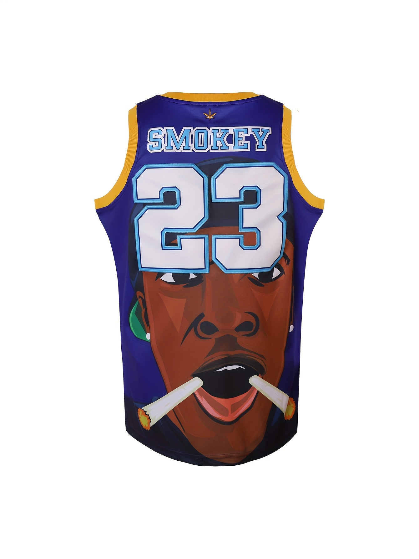 Court Classic, Men's #23 Embroidered Basketball Jersey - Retro 90s Hip Hop Style, Breathable Polyester Tank Top for Training & Competition, Machine Washable - Blue, Sizes S-3XL