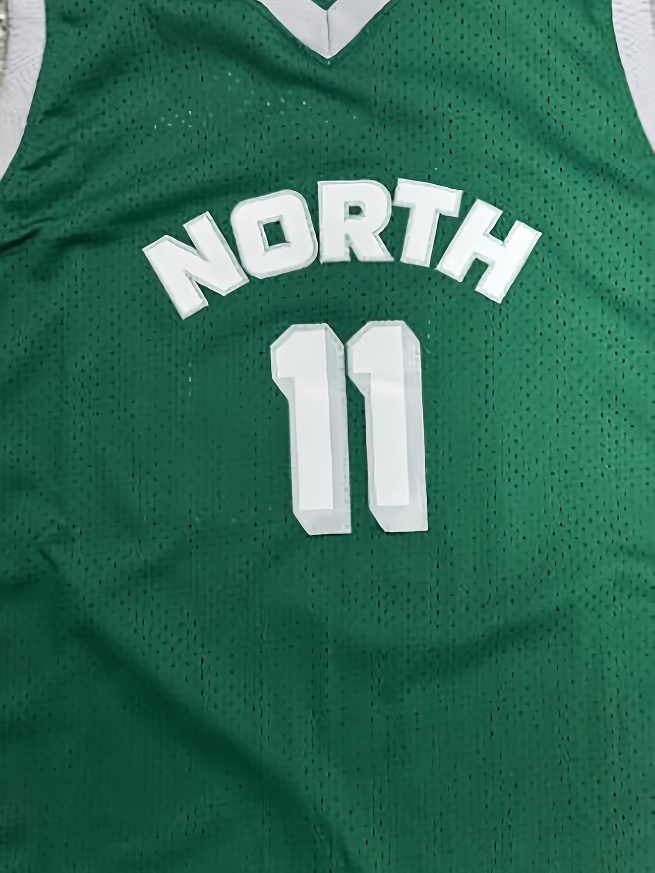 Men's #11 North Basketball Jersey - Breathable & Comfortable Mesh Tank Top, V-Neck, Sleeveless Sports Uniform for Training & Casual Wear, Green, Sizes S-3XL