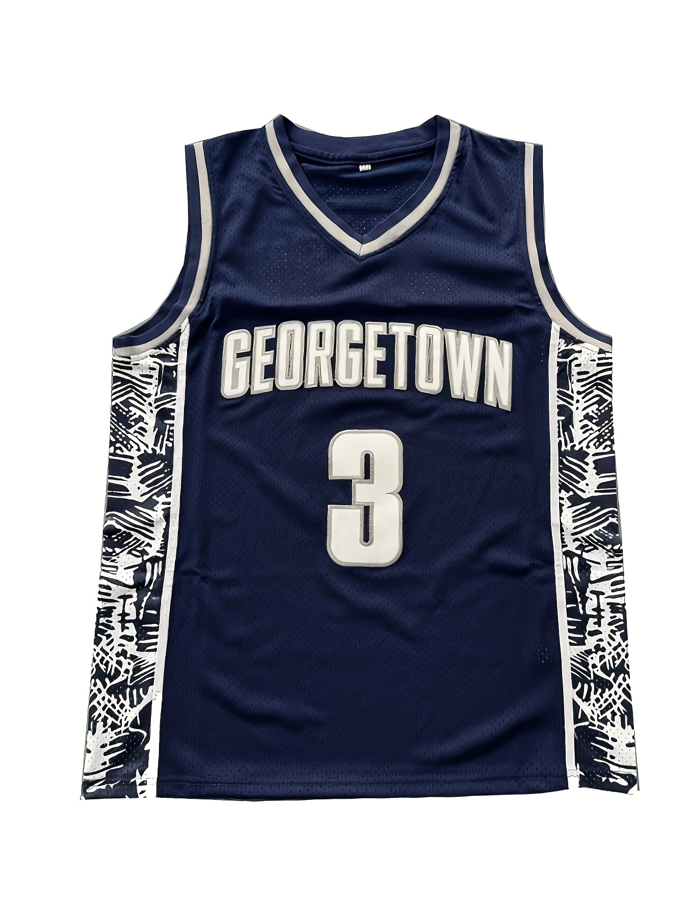 Men's Georgetown #3 Basketball Jersey - Navy Blue with White & Red Accents, V-Neck, Sleeveless, Polyester, Machine Washable - Ideal for Team Sports, Outdoor Activities & All Seasons, Basketball Gifts