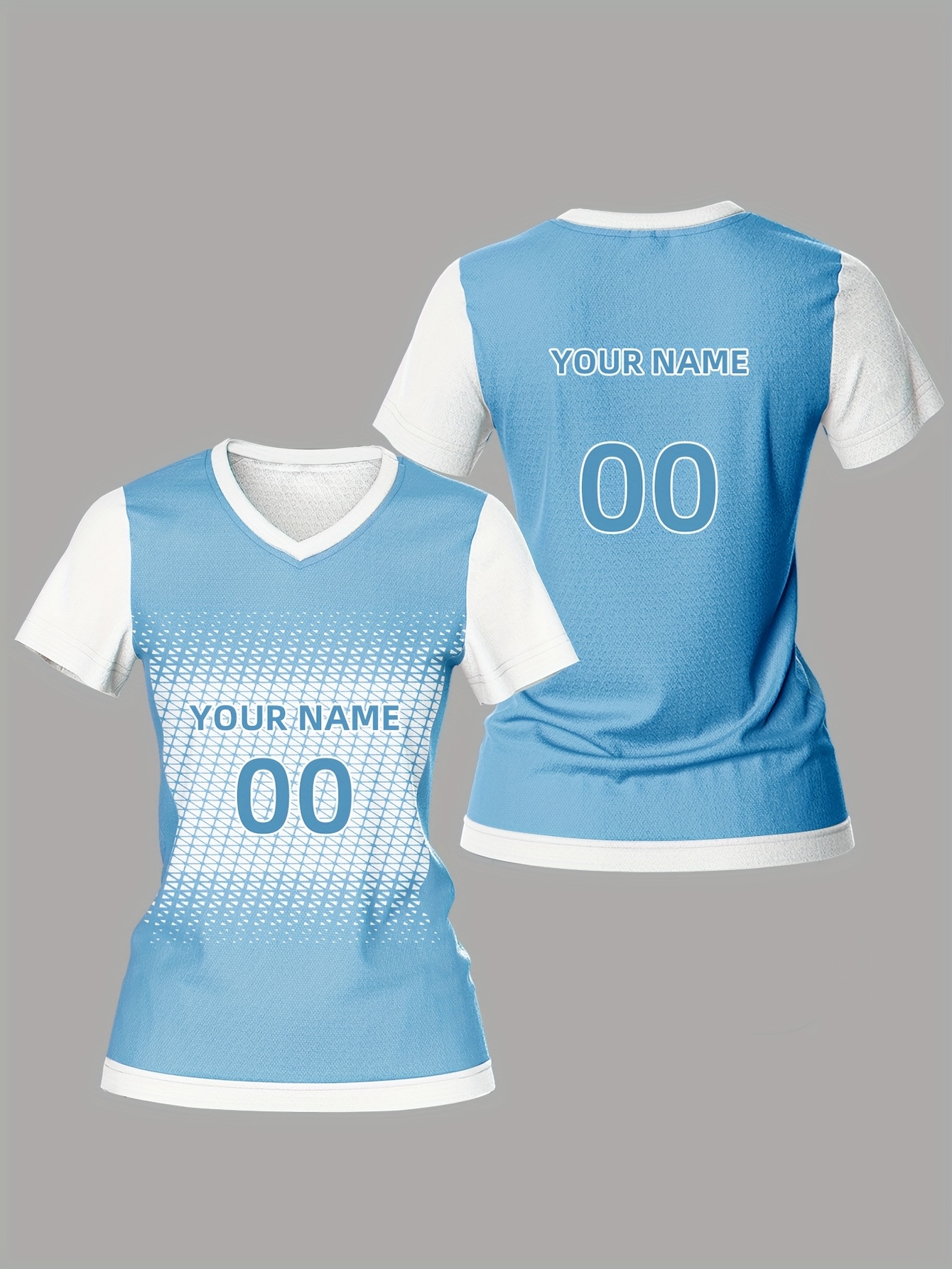 Customizable Women's V-Neck Soccer Jersey - Personalized Name & Number, Breathable Polyester, Quick-Dry Sports Top for Team Training & Casual Wear, Personalized Sports Gear | Customizable Soccer Shirt | Lightweight Jersey