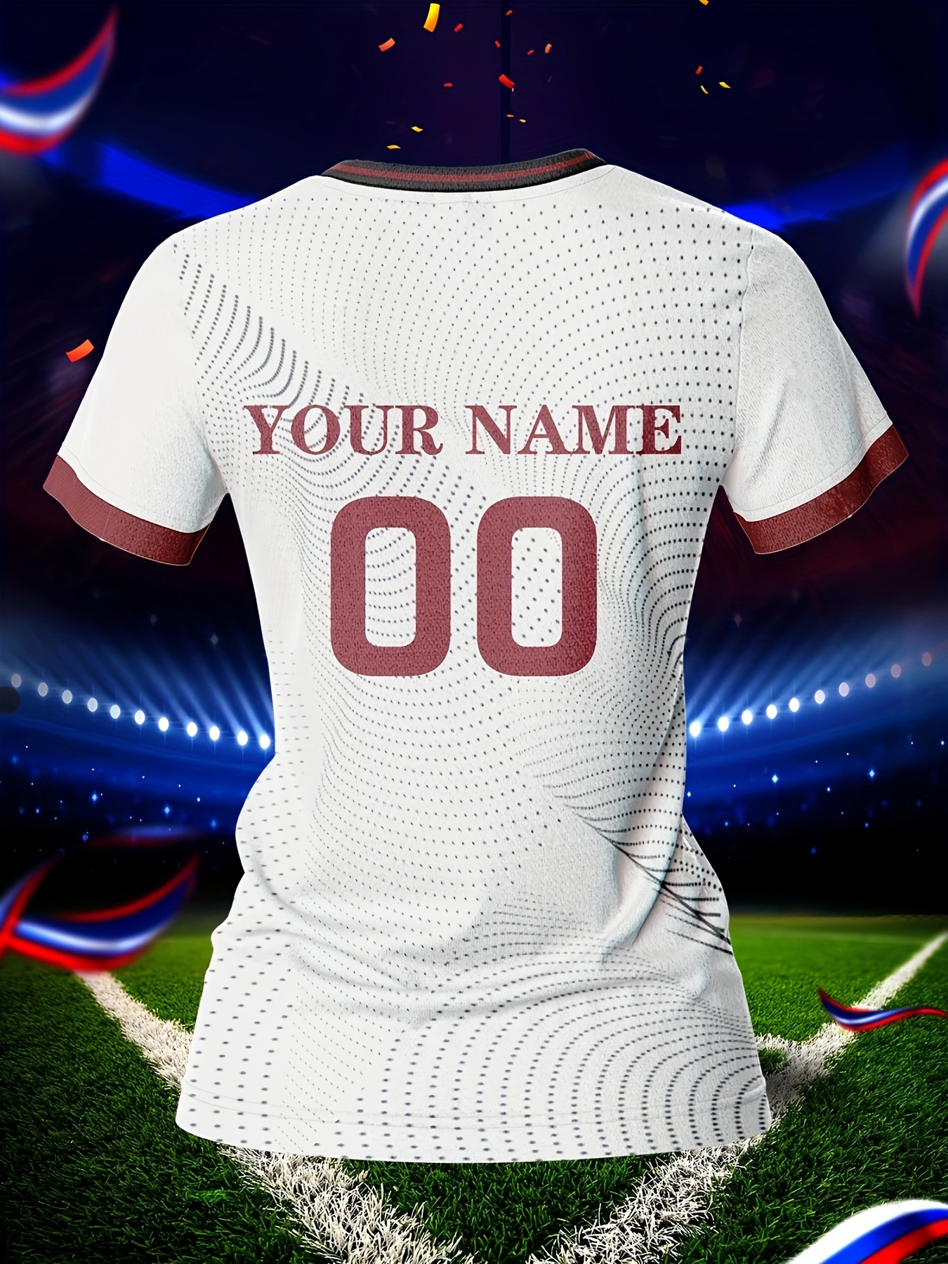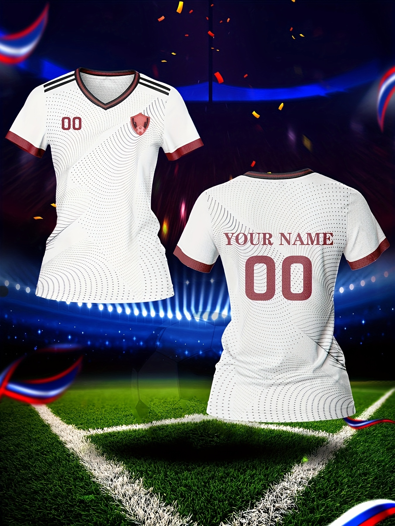 Customized Name & Number Women's V-Neck Football Jersey - Breathable Quick-Dry Moisture-Wicking Fabric, Team Training & Casual Wear with All-Over Print Design, Regular Fit for Spring Summer Fall, Personalized Football Jersey, Durable Sports Apparel