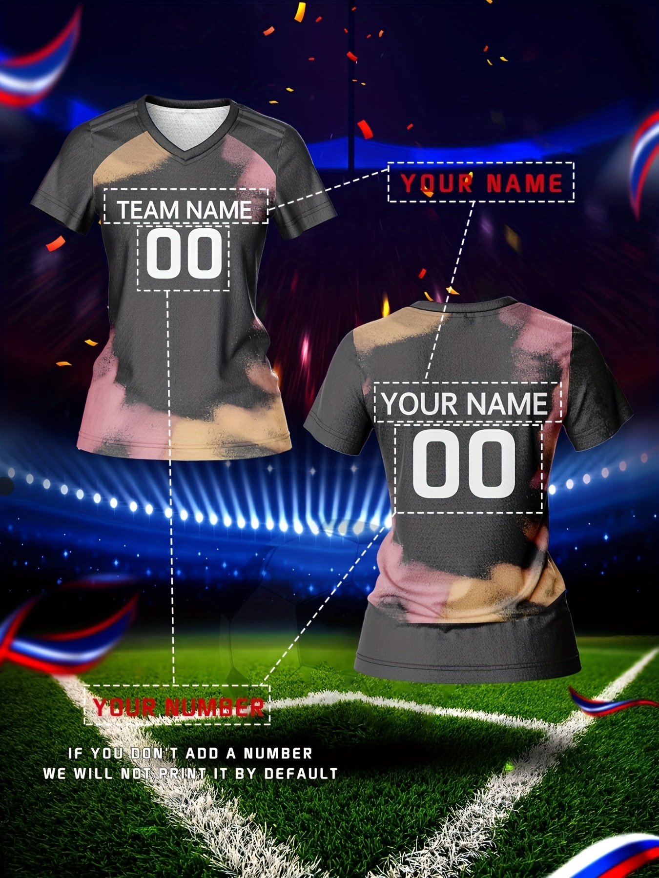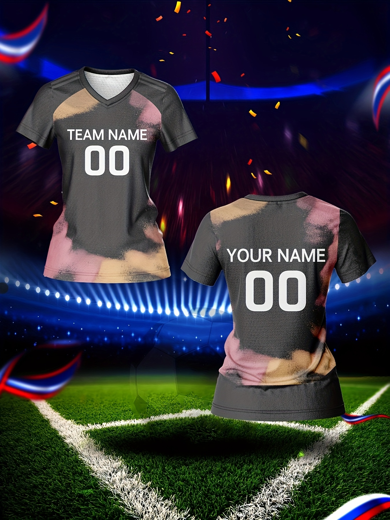 Customized Women'S V-Neck Football Jersey with Name and Number - Personalized Team Training Sports Shirt, Comfortable, Breathable, Quick-Dry Polyester for Fitness & Casual Wear, Gym Shirts