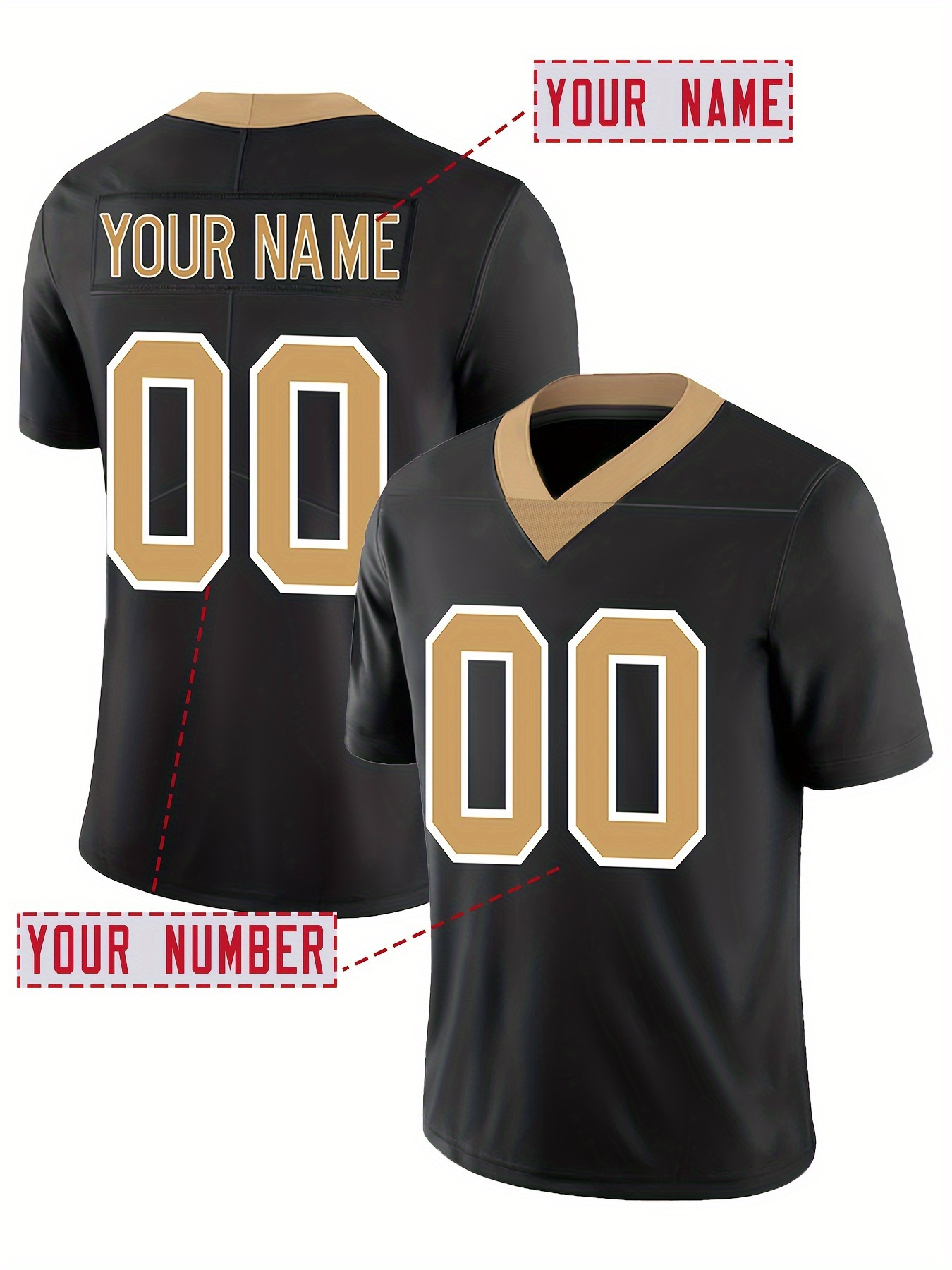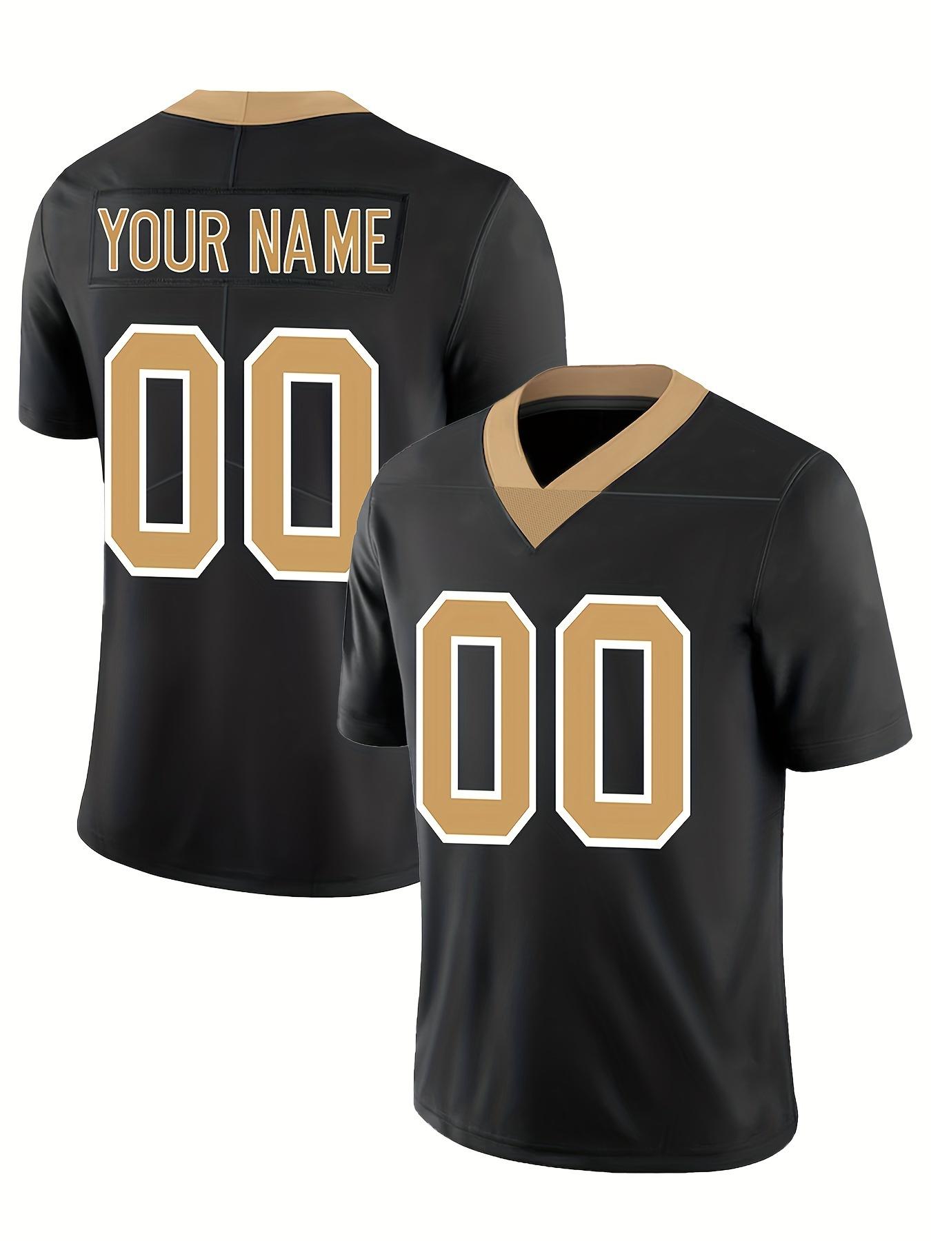 Customizable Women'S Football Jersey - Personalized Name & Number, Breathable V-Neck Design, Comfort Fit for Outdoor Sports, Black with Golden Accents, Summer Activewear, Sporty Clothing, Durable Sportswear