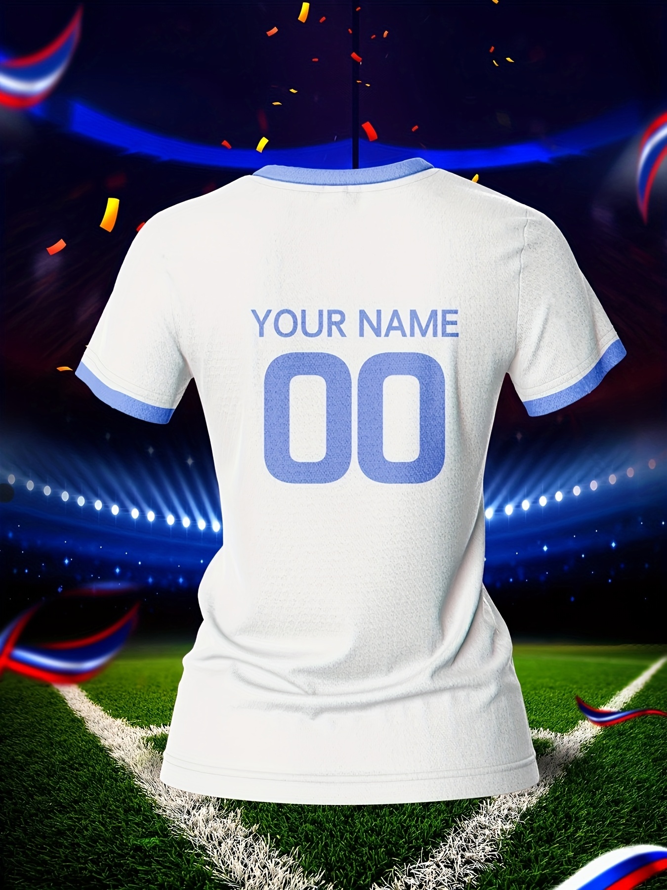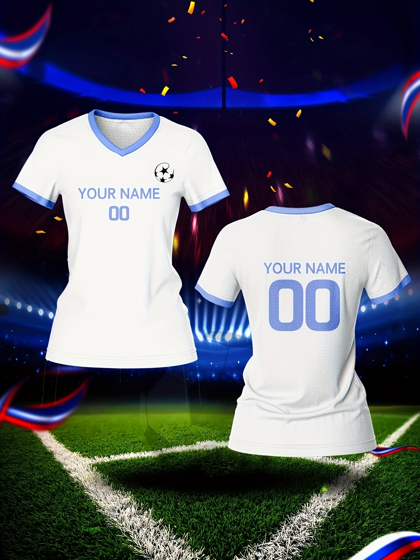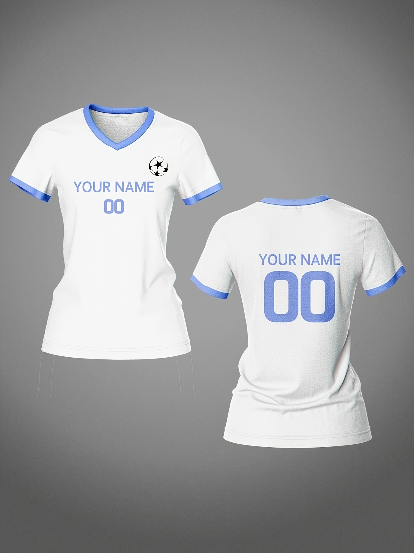 Customizable Women's V-Neck Soccer Jersey - Personalized Name & Number, Breathable Polyester, Quick-Dry Sports Top with Blue Accents for Team Training & Casual Wear, Team Apparel | Customizable Soccer Shirt | Knit Construction