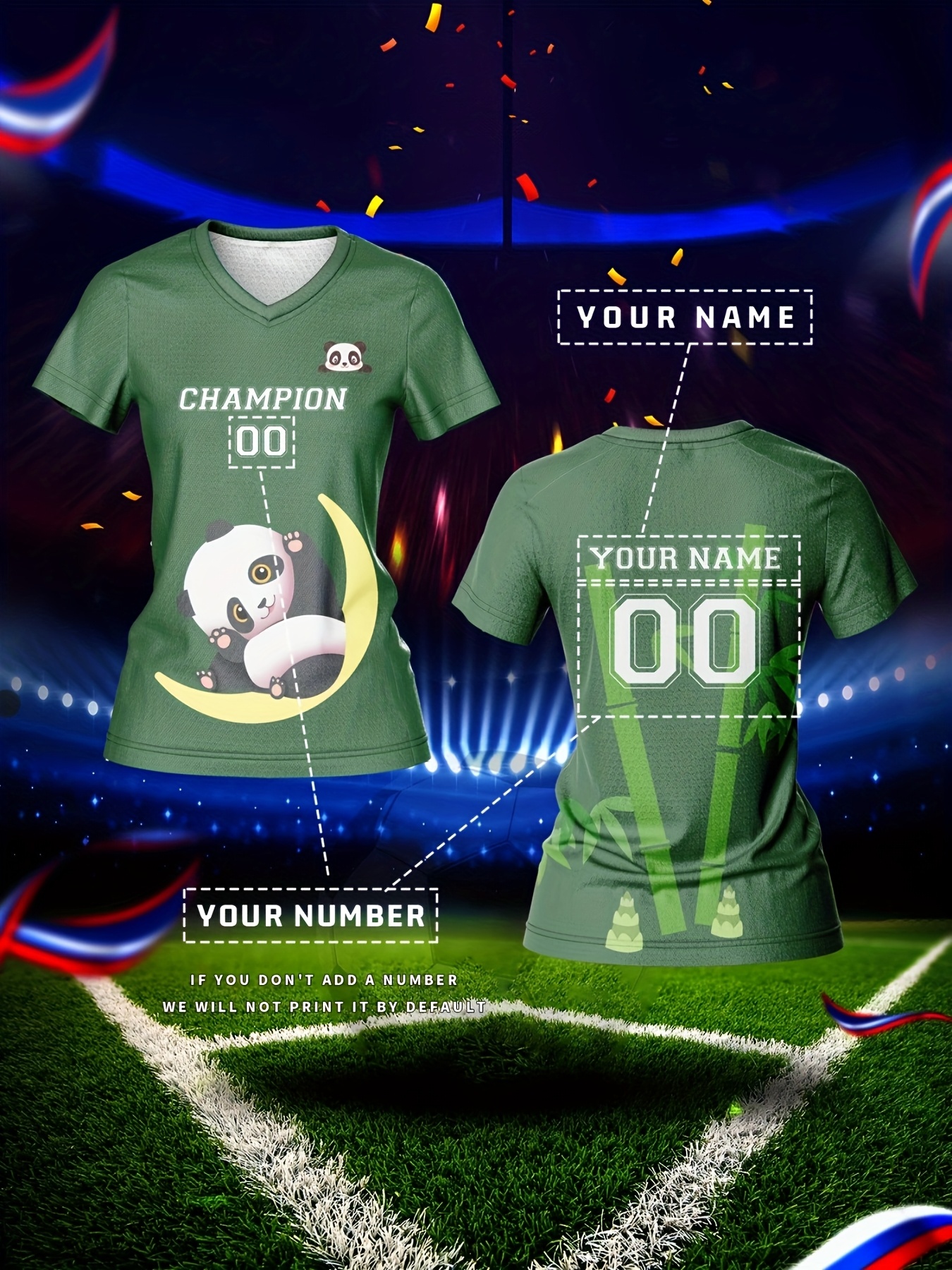 Customized Women's V-Neck Football Jersey - Personalized Name & Number, Breathable Quick-Dry Fabric, Team Training & Casual Wear with Cute Cartoon & Champion 00 Design, Spring Summer Fall Sports Apparel, Durable Sports Gear