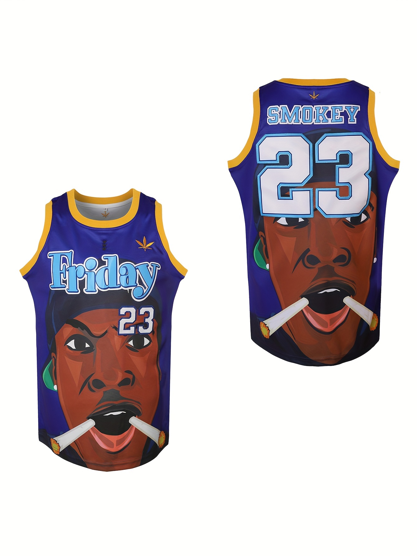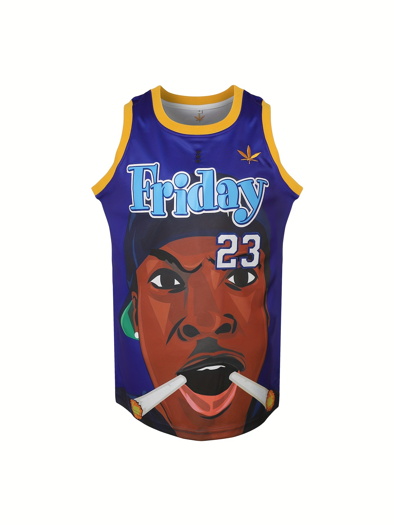 Court Classic, Men's #23 Embroidered Basketball Jersey - Retro 90s Hip Hop Style, Breathable Polyester Tank Top for Training & Competition, Machine Washable - Blue, Sizes S-3XL