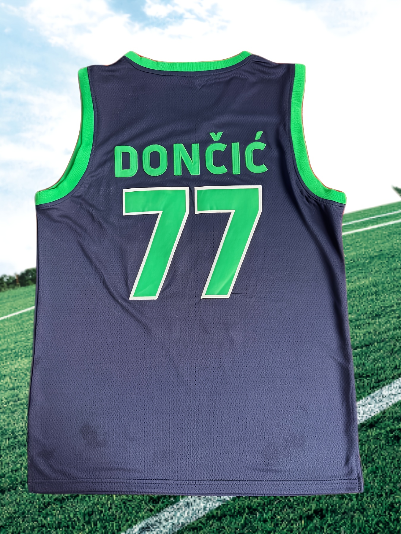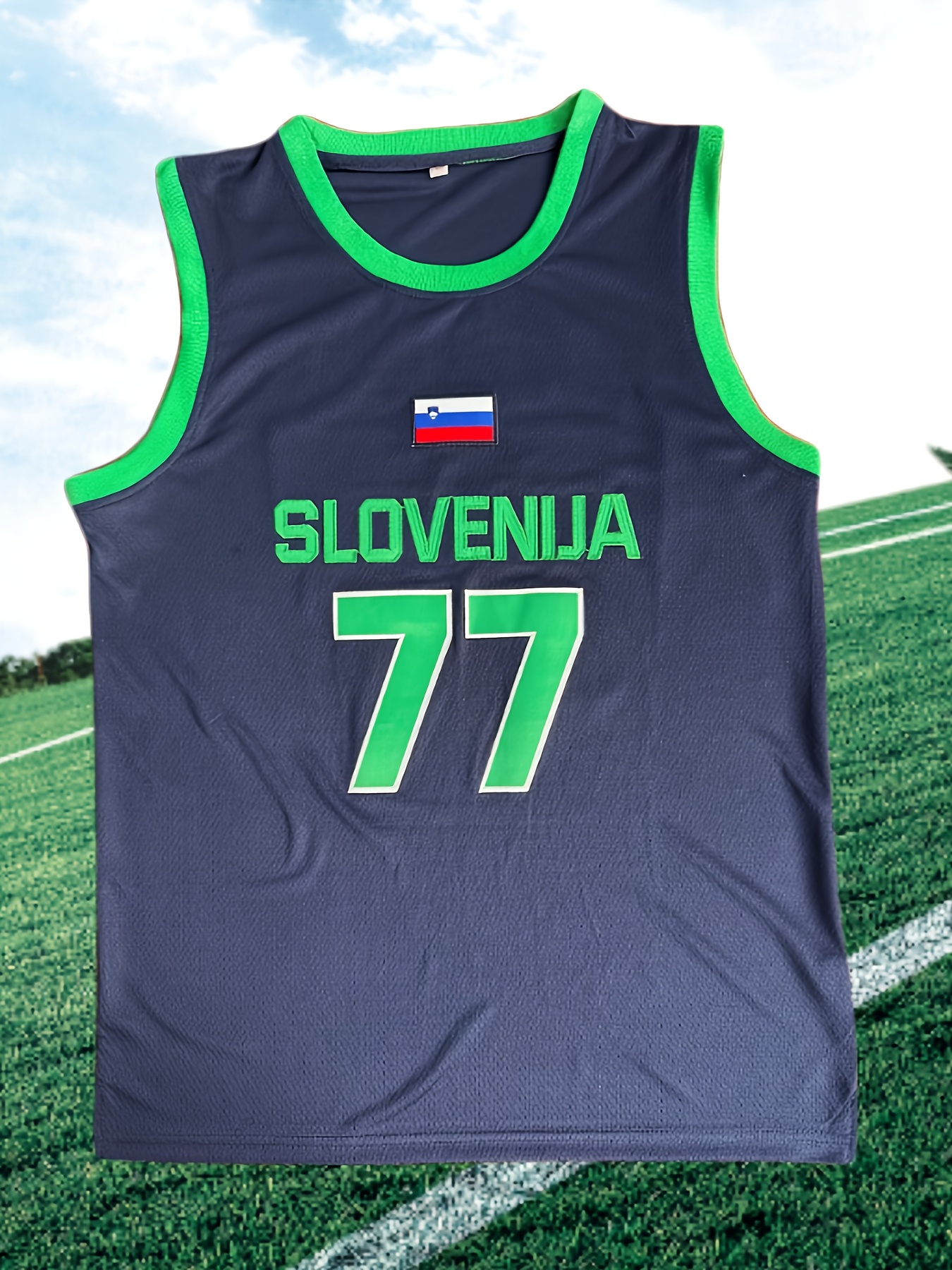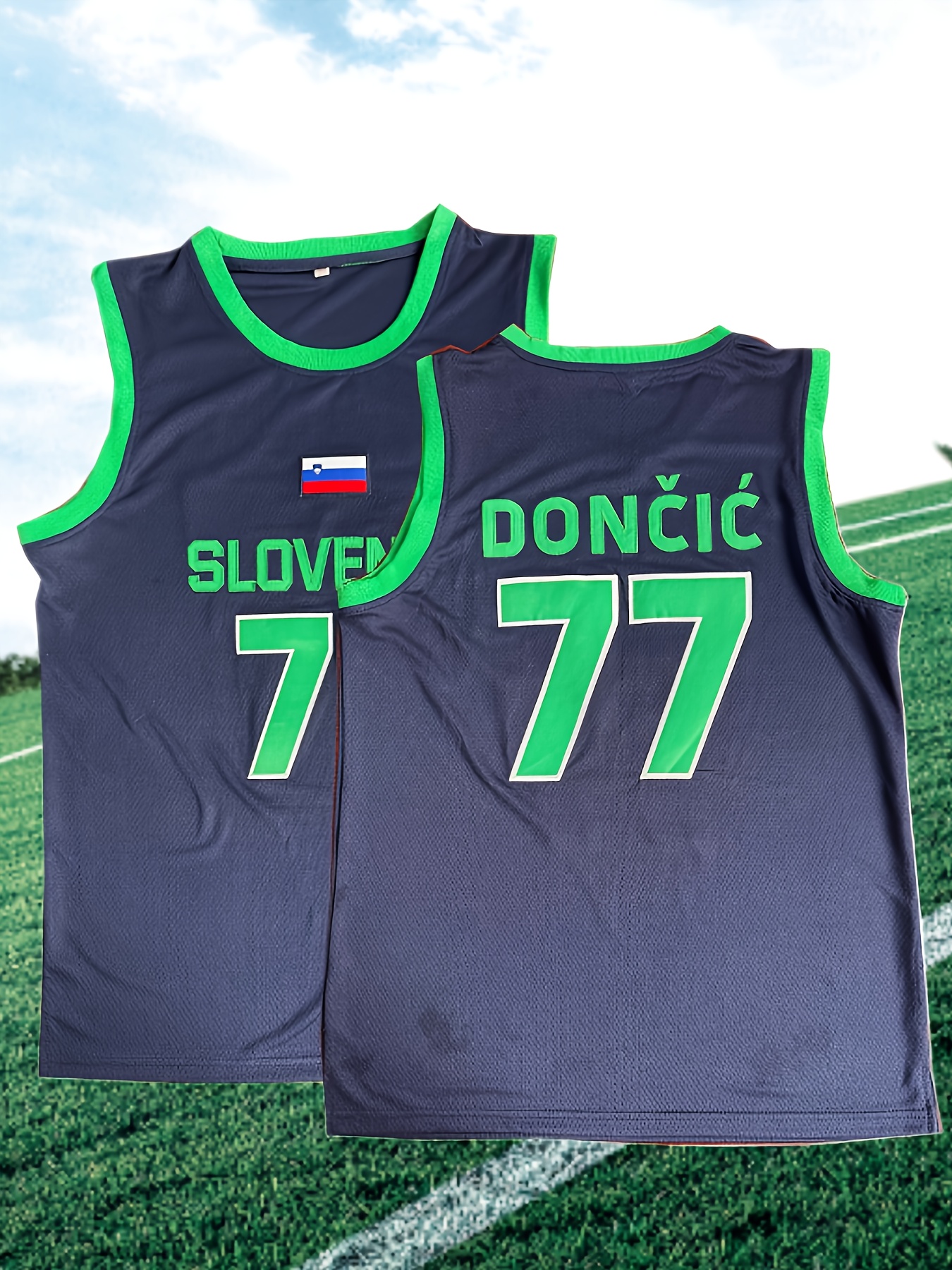 Men's #77 Embroidered Basketball Jersey - Breathable Polyester, V-Neck Sleeveless Sports Uniform for Training & Casual Wear, Machine Washable - Sizes S to 3XL, Classic Letter Embroidery Design