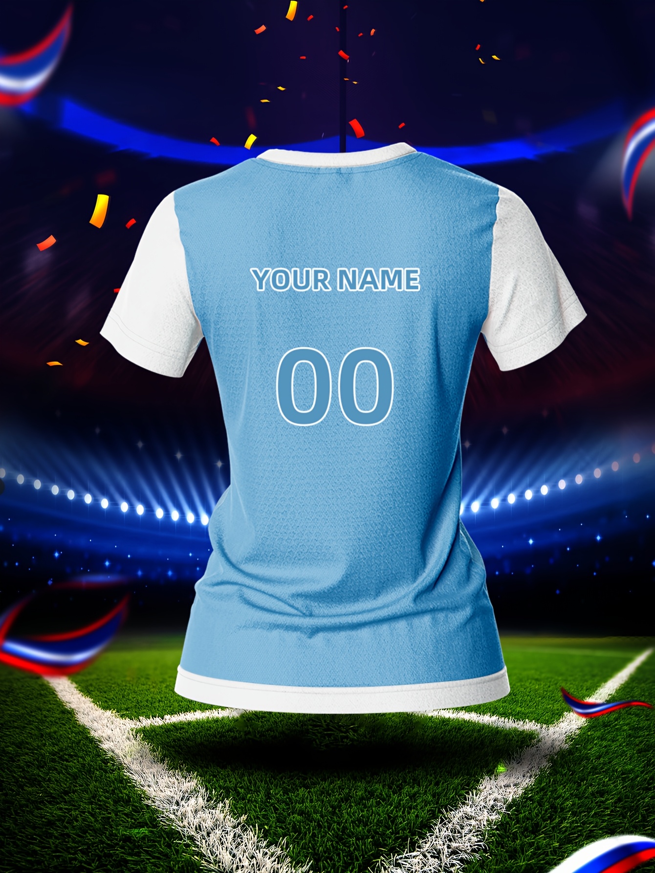 Customizable Women's V-Neck Soccer Jersey - Personalized Name & Number, Breathable Polyester, Quick-Dry Sports Top for Team Training & Casual Wear, Personalized Sports Gear | Customizable Soccer Shirt | Lightweight Jersey