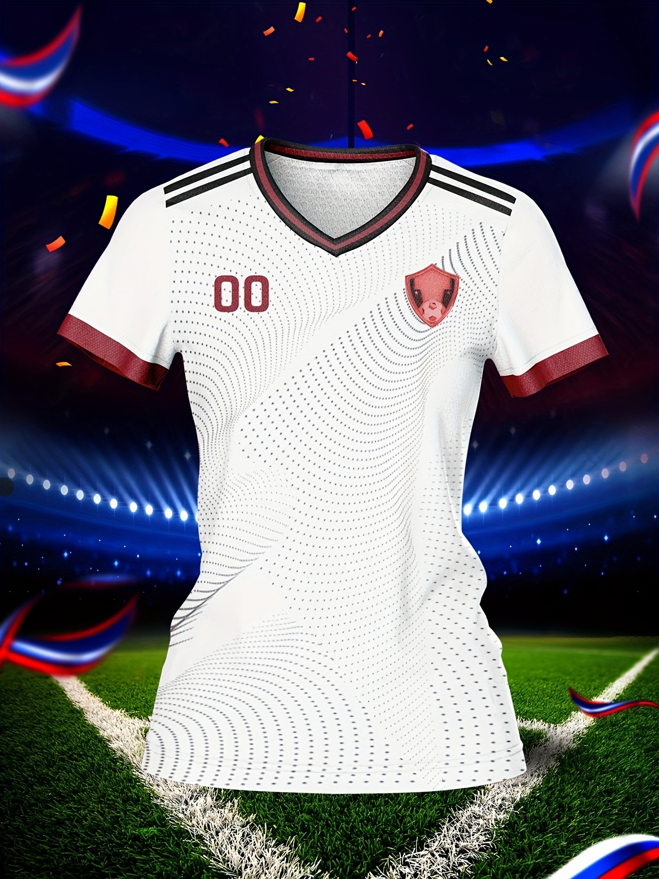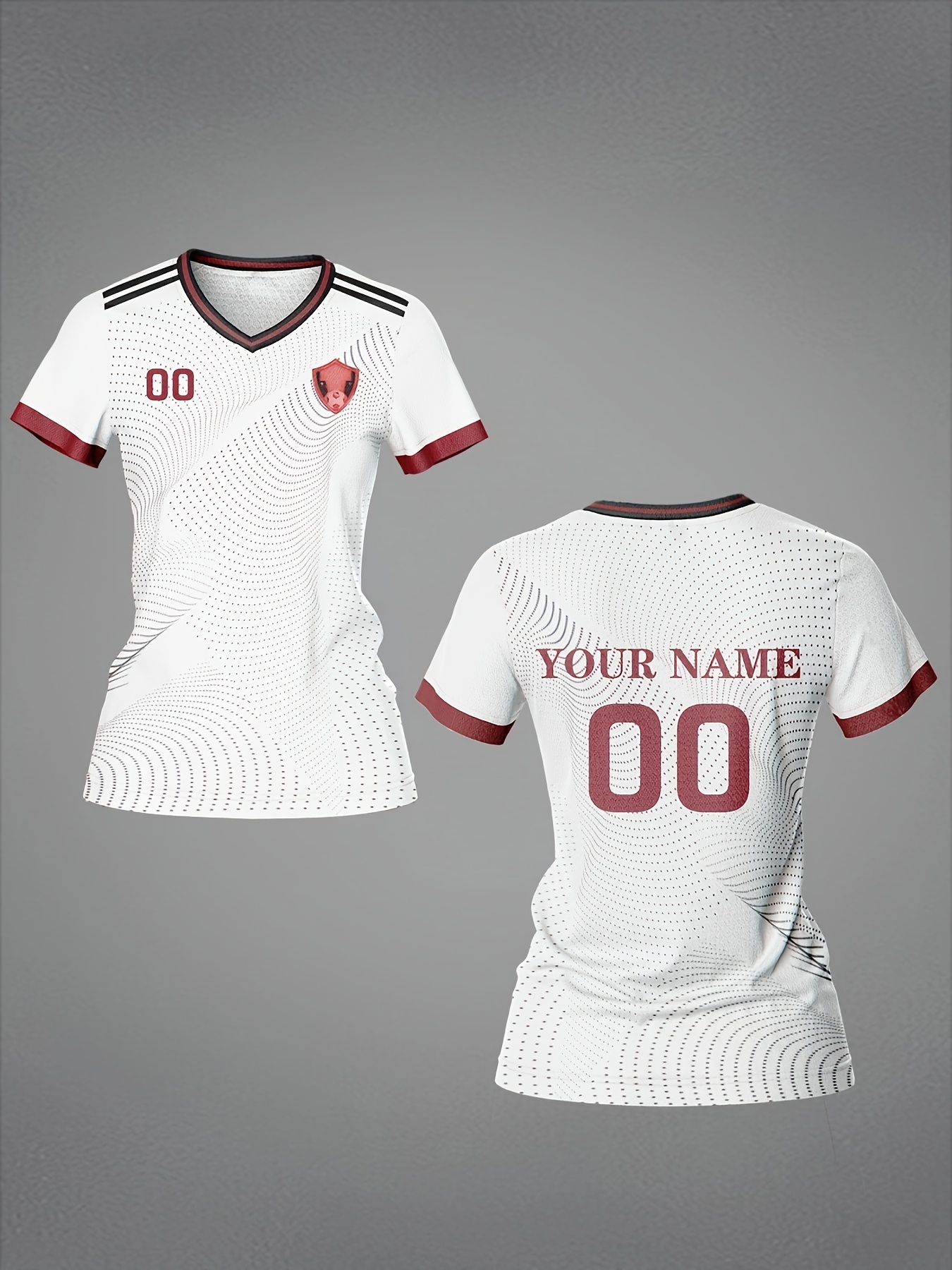Customized Name & Number Women's V-Neck Football Jersey - Breathable Quick-Dry Moisture-Wicking Fabric, Team Training & Casual Wear with All-Over Print Design, Regular Fit for Spring Summer Fall, Personalized Football Jersey, Durable Sports Apparel
